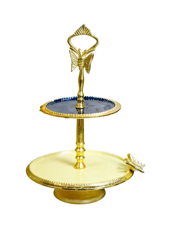 2 Tier Cake Stand Gold And Antique Brass Finished Aluminum