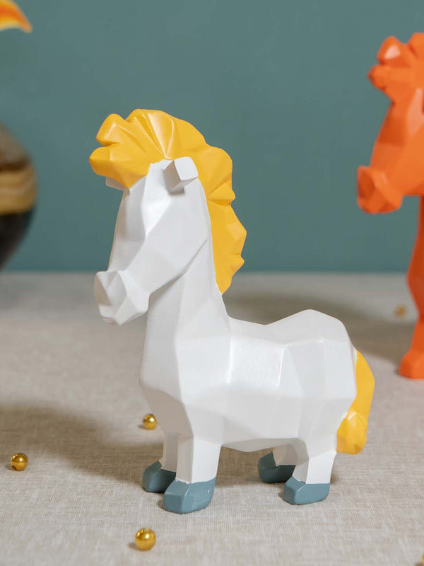 Ekaani Home's Abstract Small Pony (White) Sculpture with its vibrant hues and angular style brings forth a sprightly joyfulness to any surrounding. This pale horse with its golden hair reminds...
