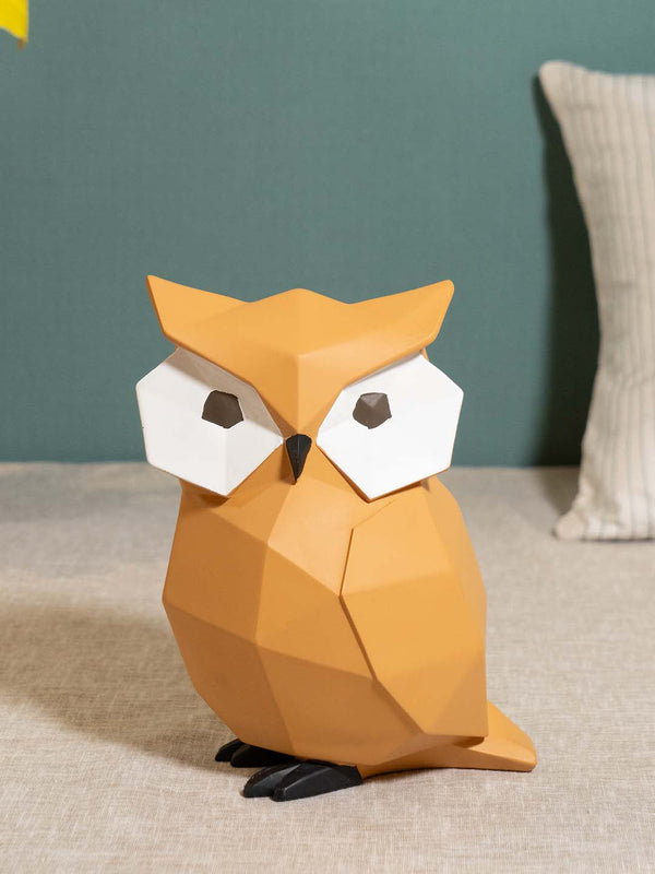 Ekaani Home's Abstract Owl Sculpture is a modern masterpiece characterized by its geometric form and striking mustard yellow hue, making it a vibrant statement piece for any decor. With its...