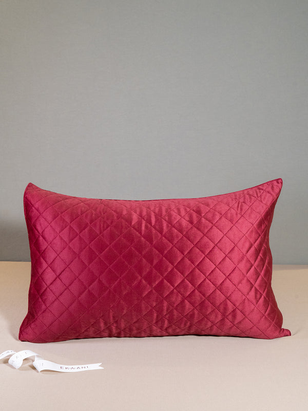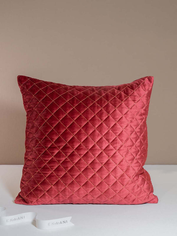 Pomegranate Viscose Velvet With Zari Quilting Red Cushion