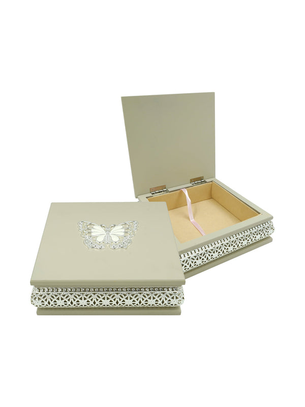 Grey Wooden Box W/Butterfly Epoxy (M)