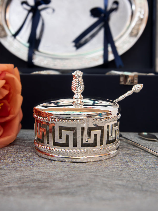 Jar (Small) Silver, Gold Finished Aluminum & Textured Brown Luster Glass With Flowers