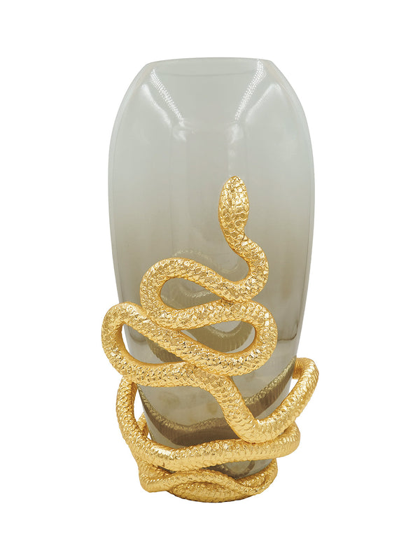 Pillar Candle Holder (Large) Serpent Gold Finished Aluminum With Gradient White And Brown Luster Glass, 18Mm White Marble Base