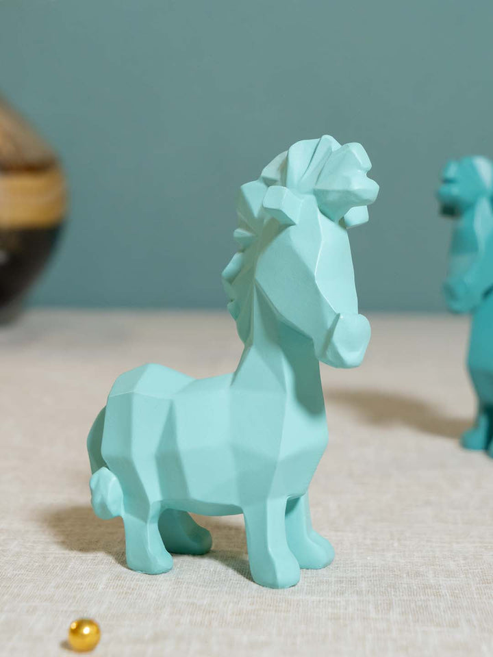Ekaani Home's Abstract Small Pony (Sea Green) Sculpture with its vibrant hues and angular style brings forth a sprightly joyfulness to any surrounding. The supple sea-green touch reminds anybody who sees it of the imaginative touch and quiet waters. It creates a statement piece with its clean lines and popping colours.