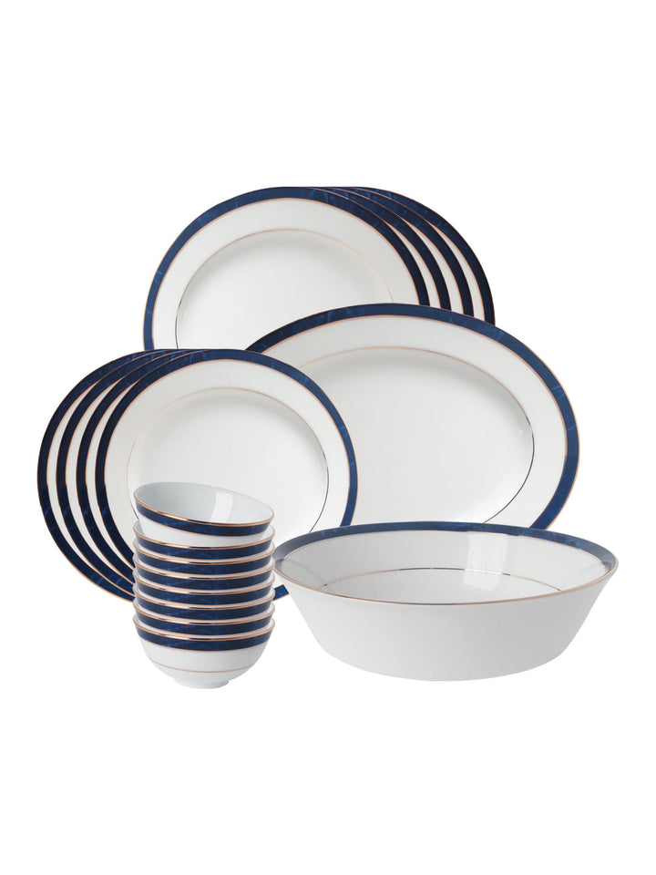 - Net Qty: 18 Pcs Dinner Set includes 4 Dinner Plates 4 Half Plates 8 Veg Bowls 1 Oval Platter 1 Serving Bowl
