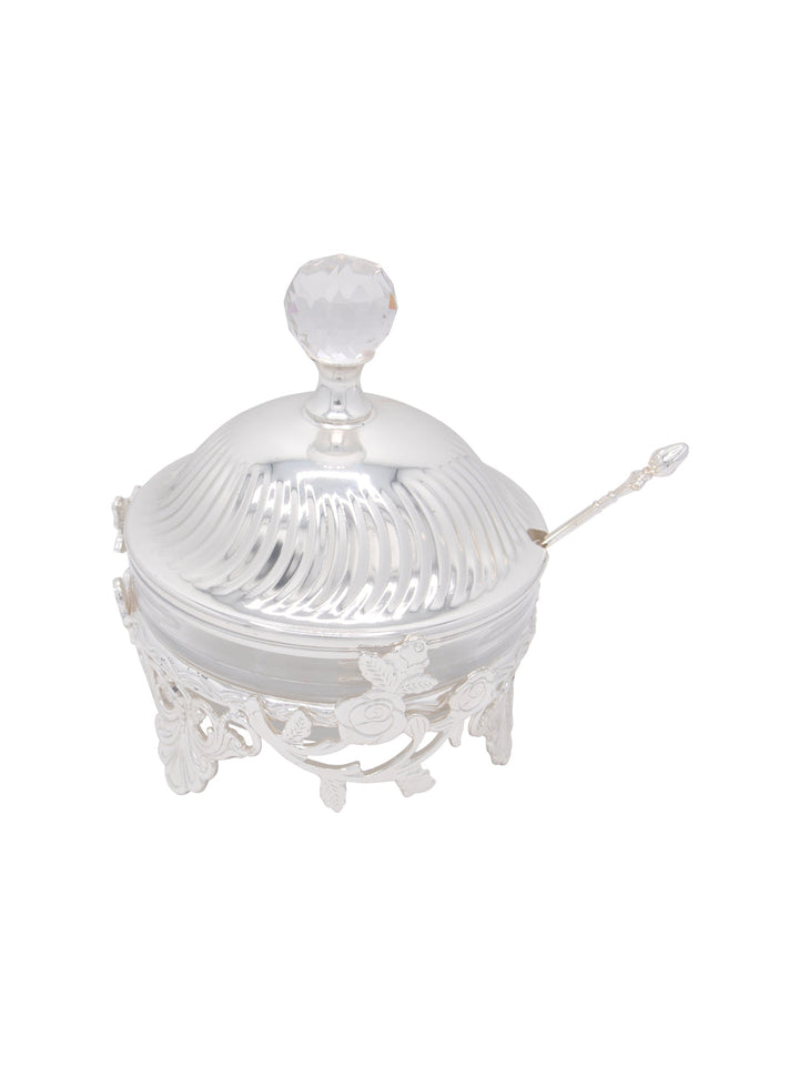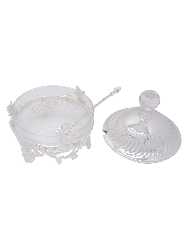 The elegant bowl in silver will enhance the look of your dining, it can be used for serving sweets and chocolates. Can also be used a masterpiece for center table with flowers or sented candels. Collect your own masterpiece of two bowl with handle from House of Ekaani. This can be presented as a cherished gift for years to come