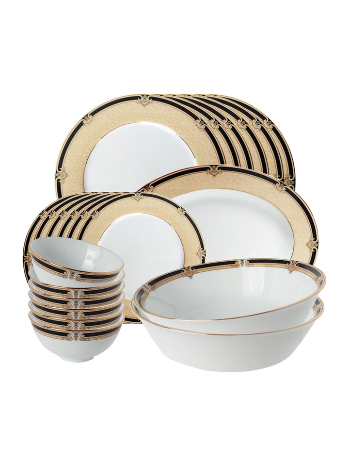 - Net Qty: 21 Pcs Dinner Set includes 6 Dinner Plates 6 Half Plates 6 Veg Bowls 1 Oval Platter 2 Serving Bowl