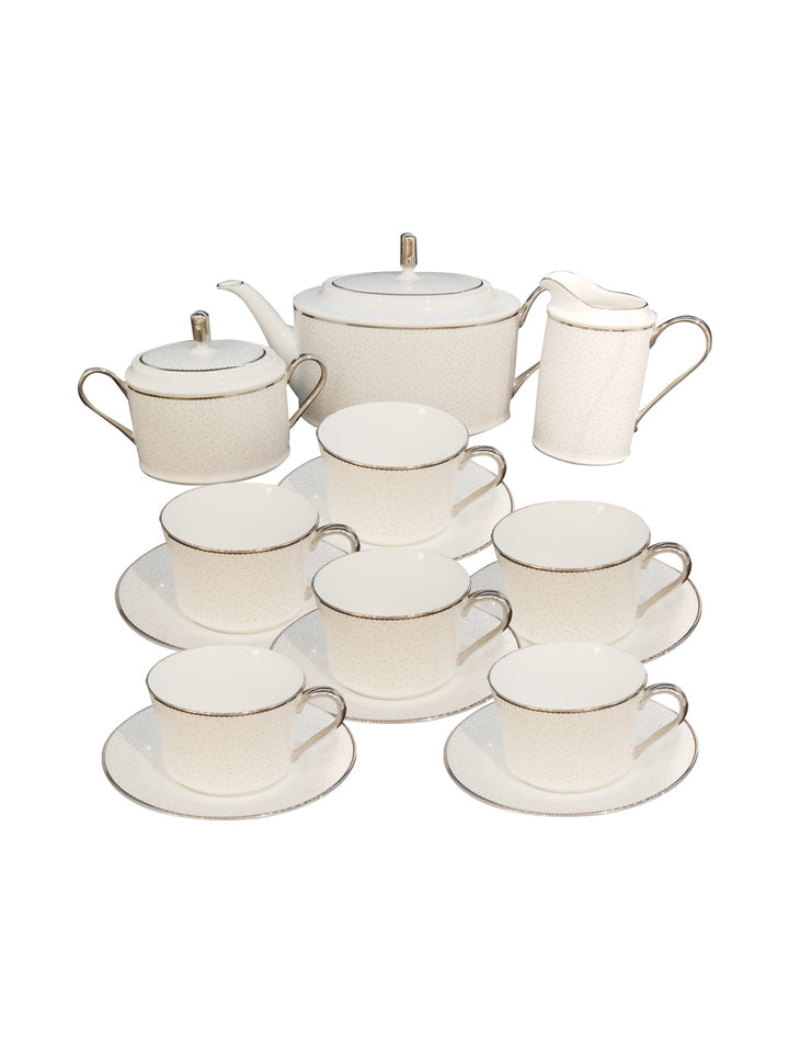 - Net Qty: 17 Pcs Tea Set Includes 6 Cup and Saucer Set Tea Pot 1 Milk Pot 1 lid 1 Tea Pot 1 lid 1 Sugar Pot