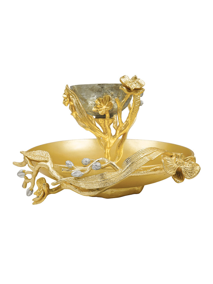 Chip N Dip Silver Plated & Gold Finished Aluminum With Textured Brown Luster Glass And Flowers