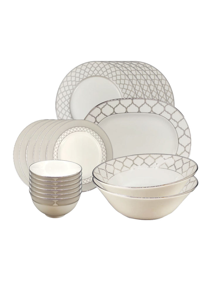 - Net Qty: 21 Pcs Dinner Set includes 6 Dinner Plates 6 Half Plates 6 Veg Bowls 1 Oval Platter 2 Serving Bowl