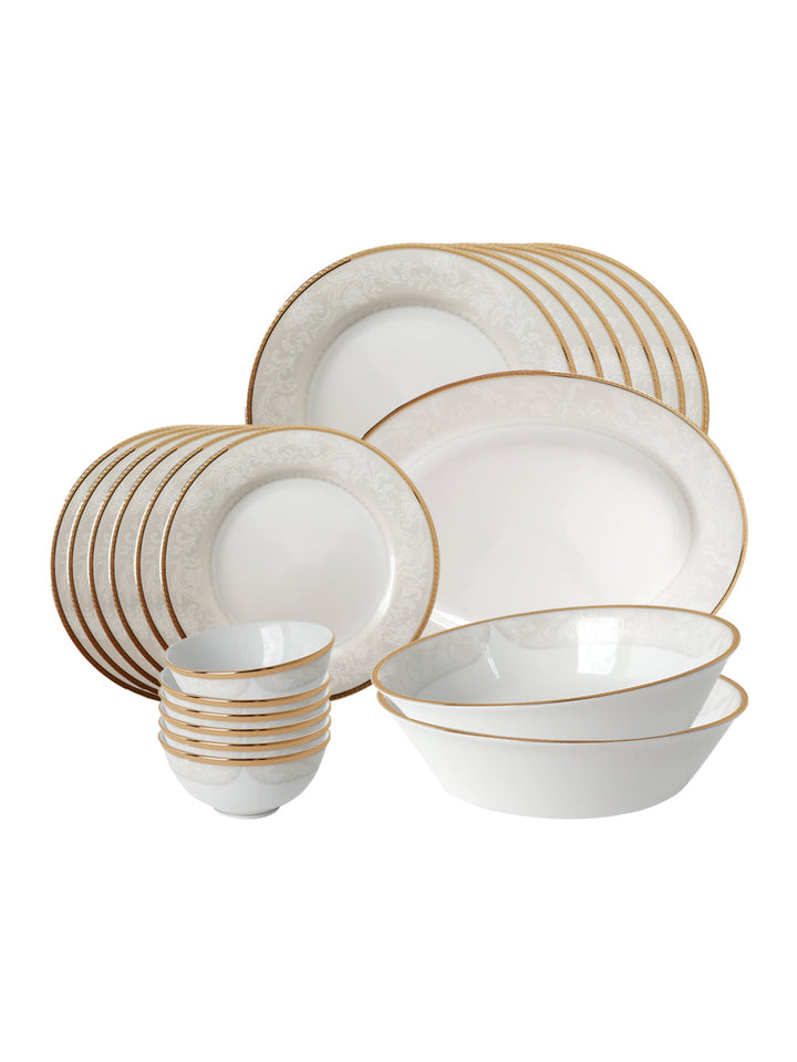 - Net Qty: 21 Pcs Dinner Set includes 6 Dinner Plates 6 Half Plates 6 Veg Bowls 1 Oval Platter 2 Serving Bowl