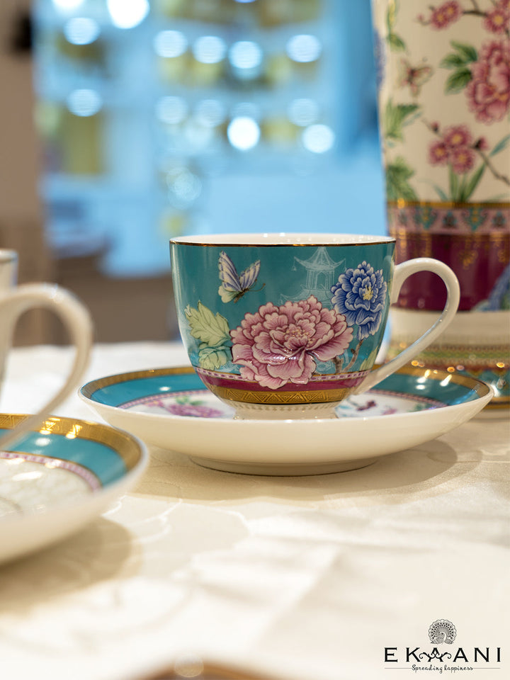 Give a charming addition to your crockery collection with Ekaani Flower Cup Saucer (Set of 2). Stylishly crafted with quality material, this saucer cup set gives adorable look. The color combination and flora print plays lead role in enhancing its look. Plan a tea date with your loved one and surprise them with these mesmerizing set, perfect for serving 2. Best for gifting at any occasion.