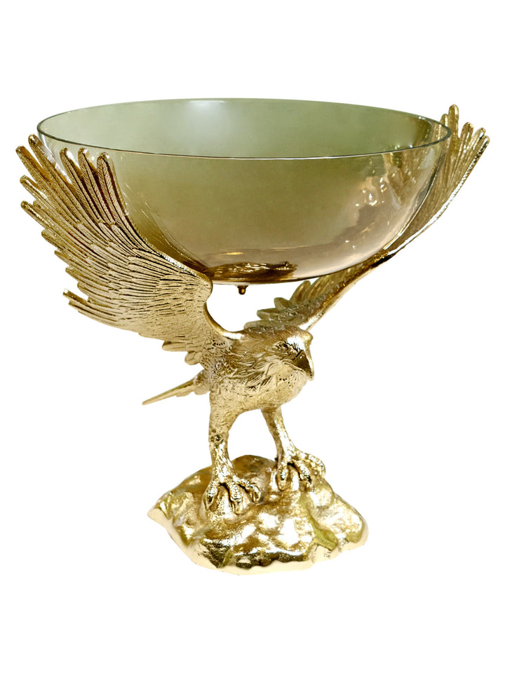 Footed Bowl Eagle Gold Finished Aluminum With Half Brown Luster Glass