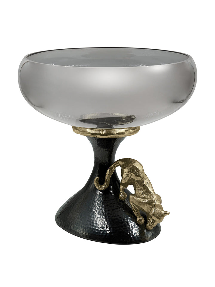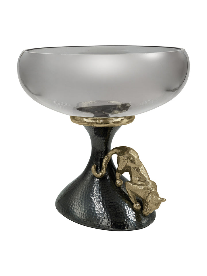 Footed Bowl Jaguar Gold & Black Nickel Finished Hammered Aluminum With Light Black Luster Glass