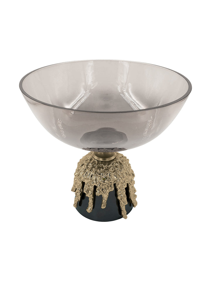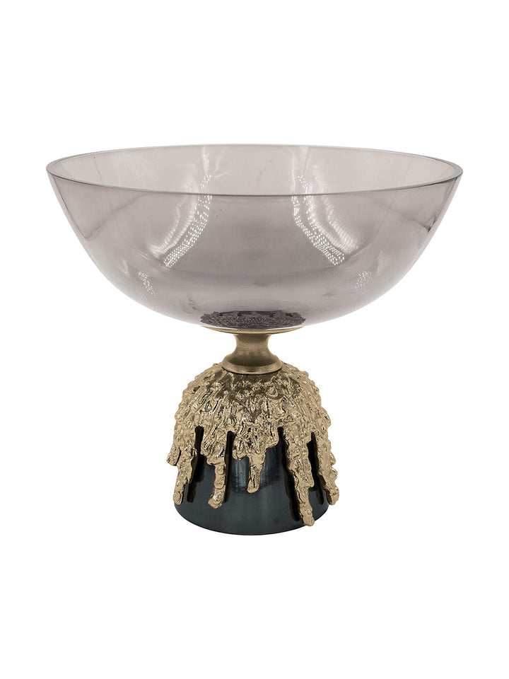 Footed Bowl (Small) Melting Wax Gold Finished & Black Nickel Plated Alu With Half Black Chrome Glass
