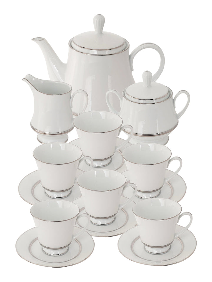 - Net Qty: 17 Pcs Tea Set Includes 6 Cup and Saucer Set Tea Pot 1 Milk Pot 1 lid 1 Tea Pot 1 lid 1 Sugar Pot