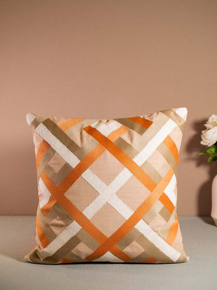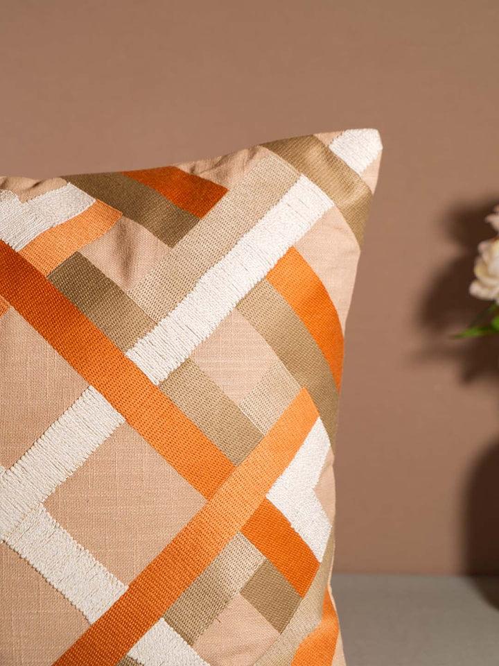Ekaani Home's Ikkat collection cushion offers captivating designs inspired by diverse themes and elements. This cushion captures the interplay of light and shadow with warm earthy tones and bold geometric patterns, evoking the beauty of nature and ancient cultures. The vibrant colors, organic shapes, and intricate patterns add magic to any décor.