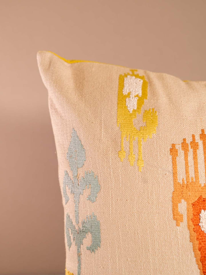 IKKAT-CUSHION WITH EMBROIDERY-MULTICOLOUR