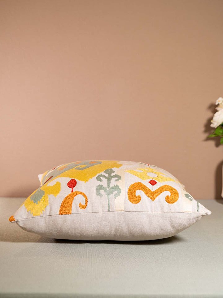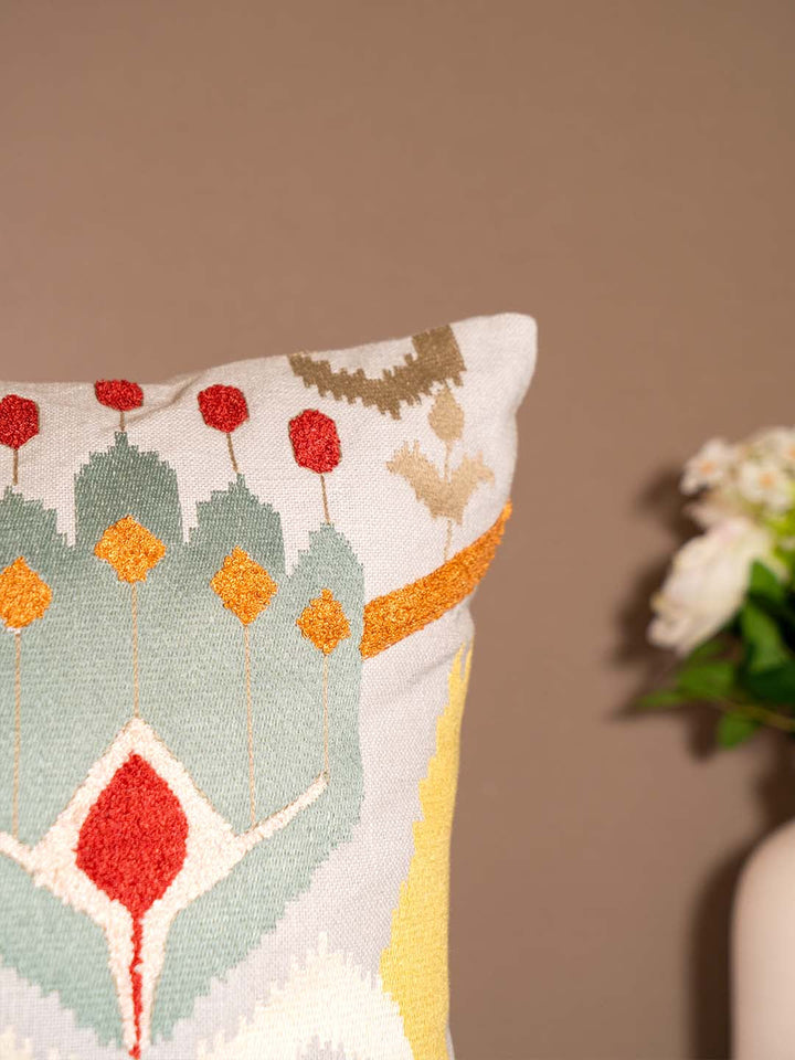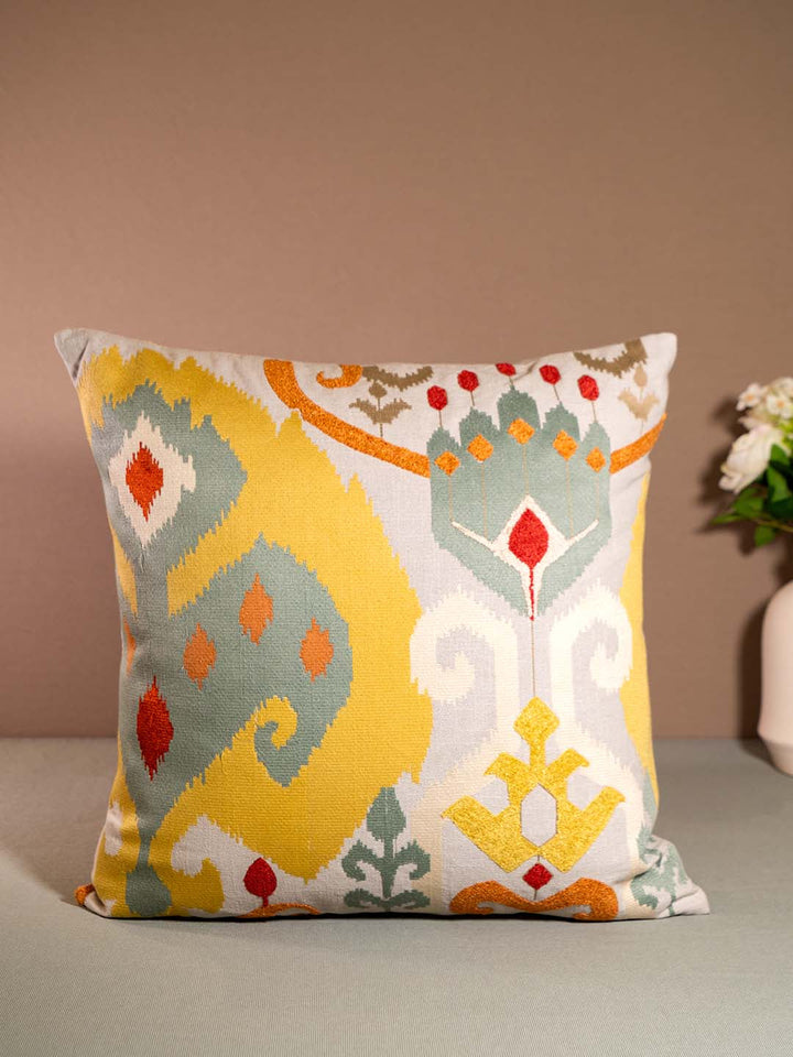 IKKAT-CUSHION WITH EMBROIDERY-MULTICOLOUR