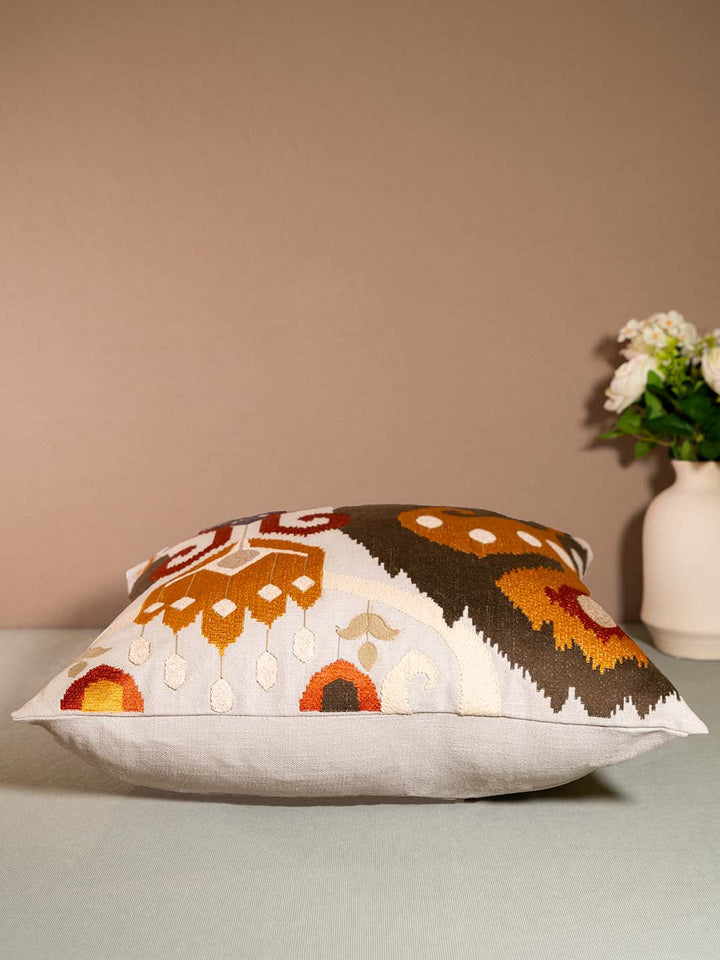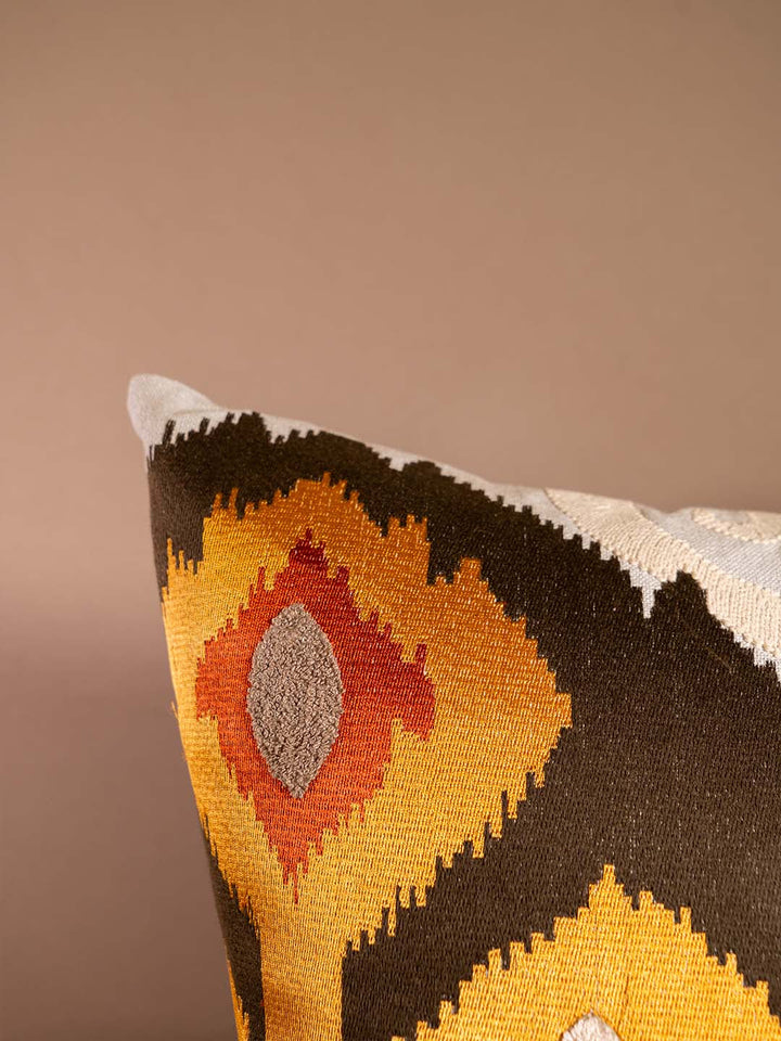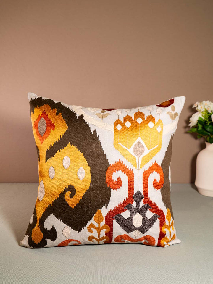 IKKAT-CUSHION WITH EMBROIDERY-MULTICOLOUR