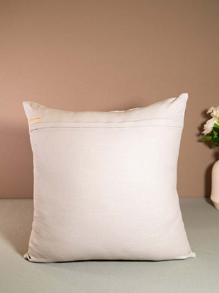 Ekaani Home's Ikkat collection cushion beautifully captures the vivid hues of a desert sunset, featuring rich browns, bright oranges, and warm golden yellows that bring a cozy feel to any space. The detailed patterns on the cushion create a fascinating dance of light and shadow, echoing the shifting sands and the tales they hold.