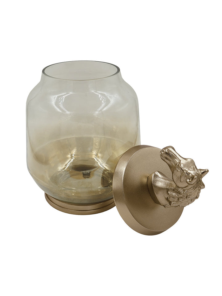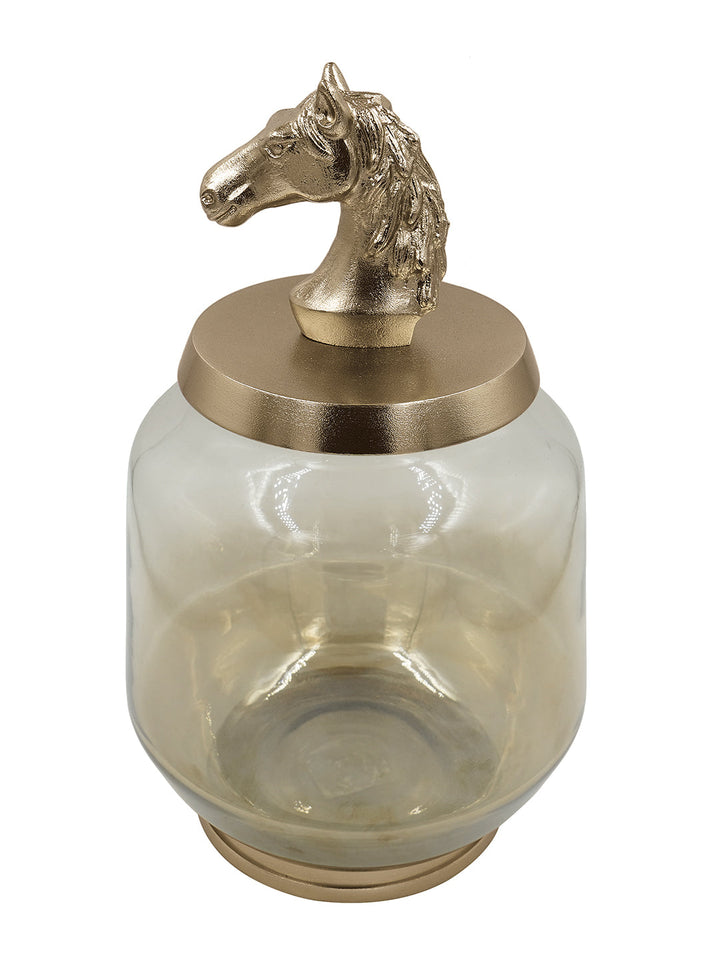 Jar (Large) Horse Gold Finished Aluminum With Half Brown Luster Glass