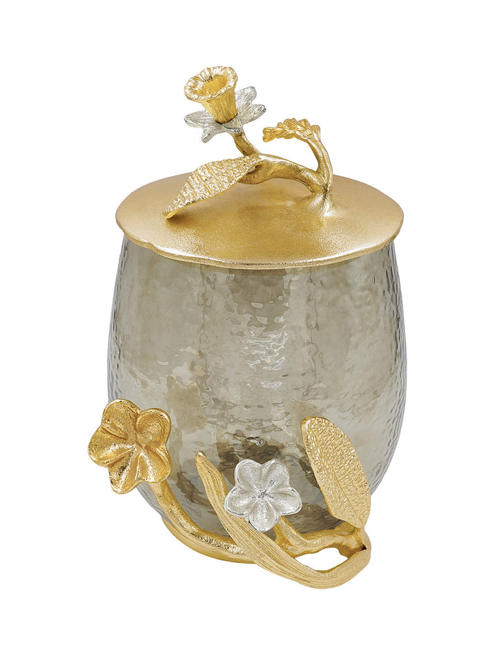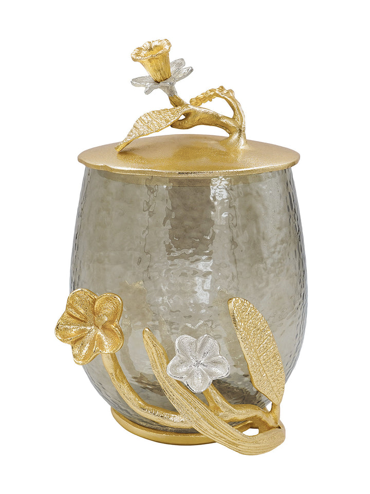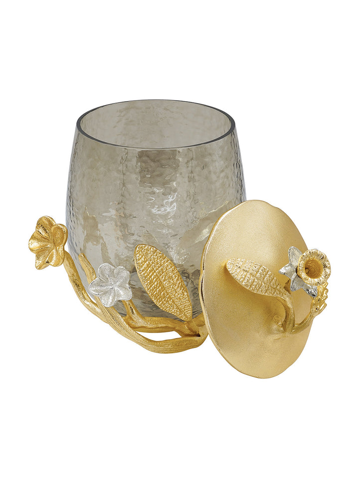 Jar (Small) Silver, Gold Finished Aluminum & Textured Brown Luster Glass With Flowers