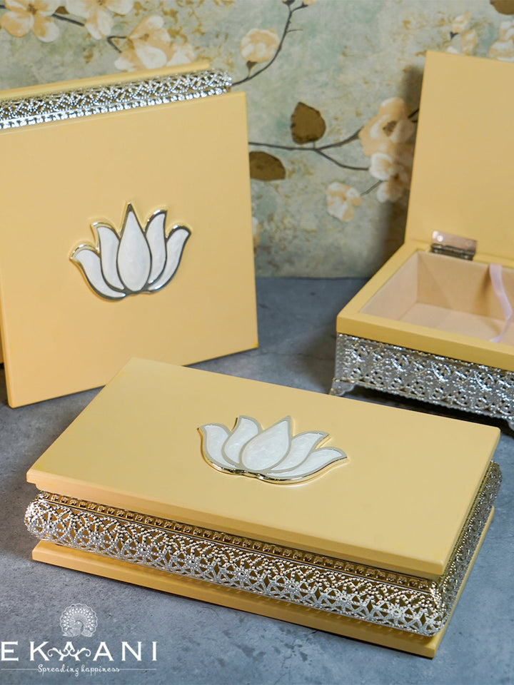 Light Beige Wooden Box W/Flower Epoxy