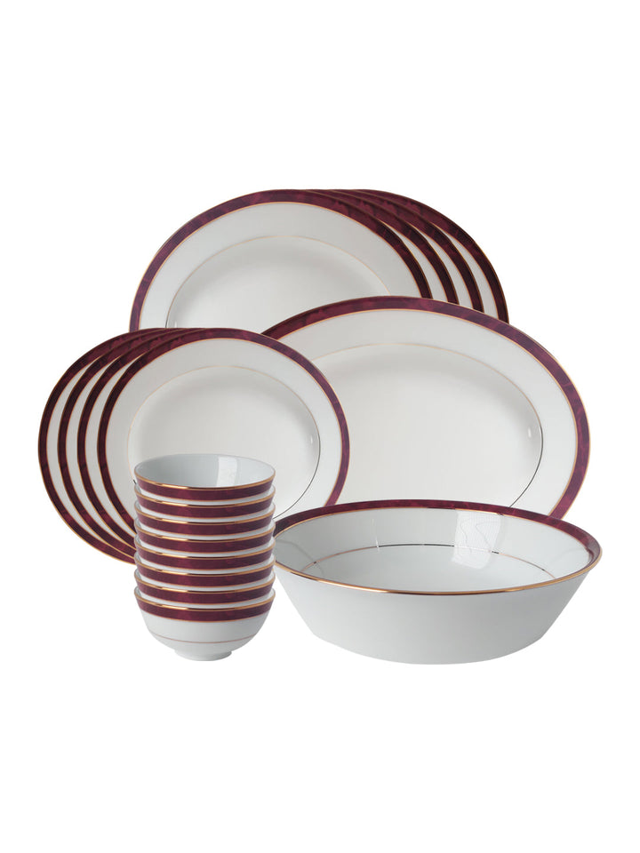- Net Qty: 18 Pcs Dinner Set includes 4 Dinner Plates 4 Half Plates 8 Veg Bowls 1 Oval Platter 1 Serving Bowl