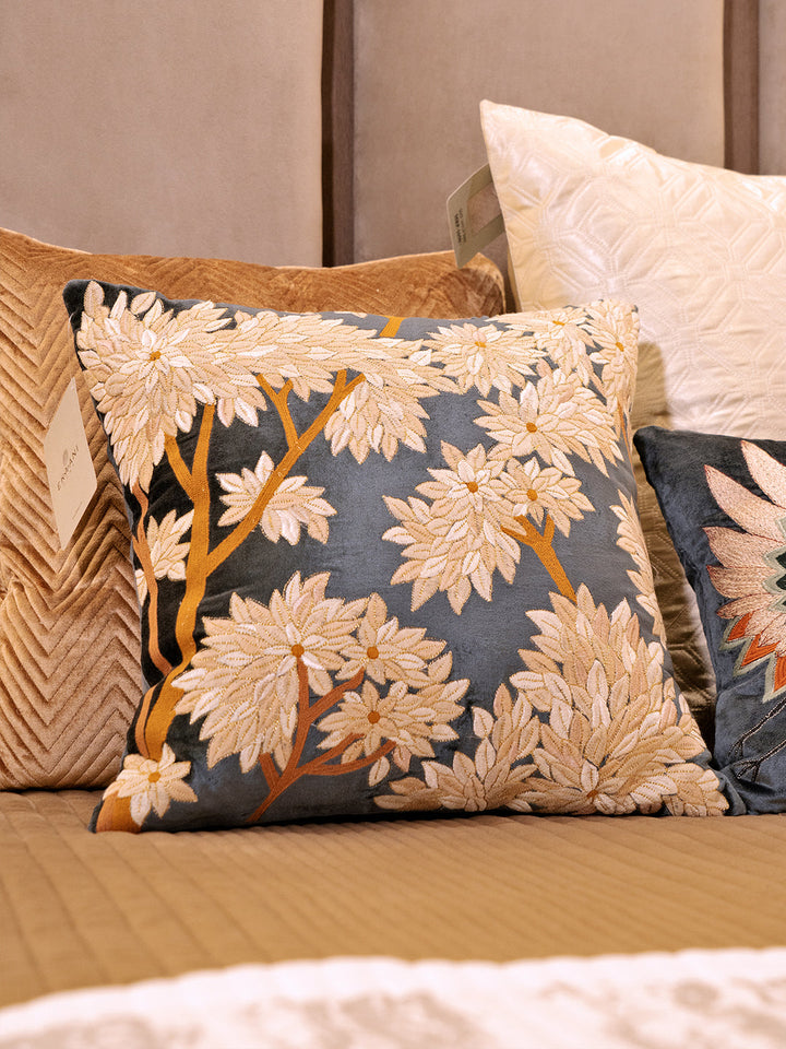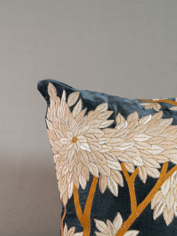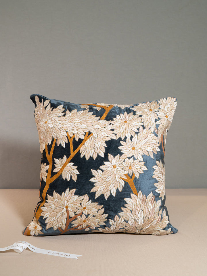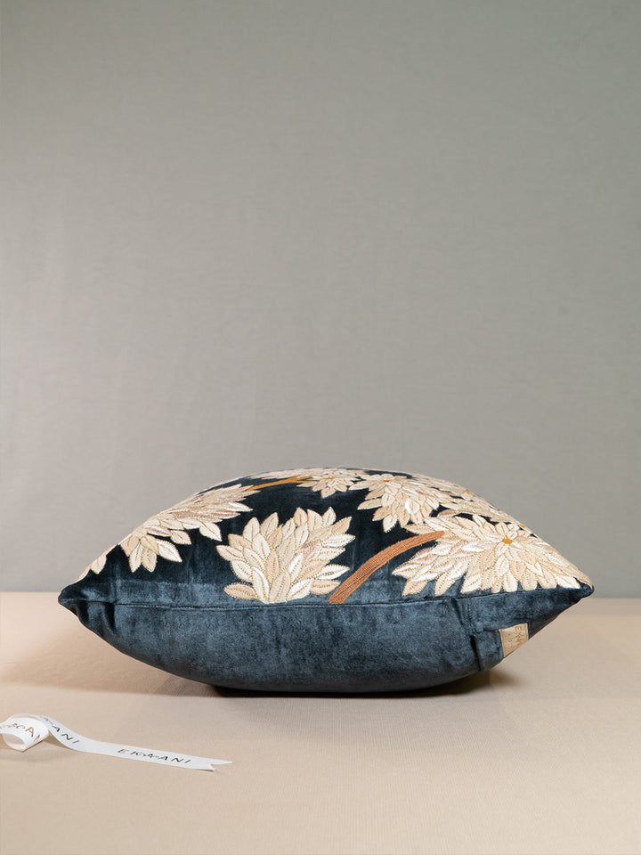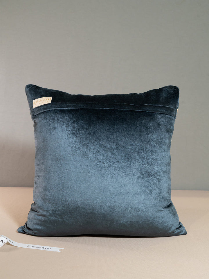 Nature Viscose Velvet With Heavy Thread Embroidery Dark Teal Cushion
