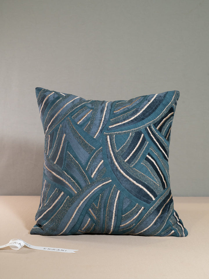 Description: Add a touch of modern sophistication to your space with Ekaani's Nature viscose velvet Cushion Cover. This luxurious design features intricate embroidery on a rich dark teal backdrop, creating a captivating abstract pattern. Crafted from premium viscose velvet, this cushion cover offers exceptional softness and comfort, perfect for those seeking a contemporary and chic decor accent.