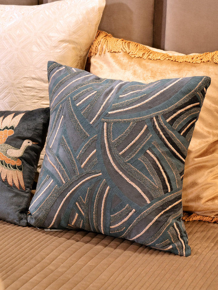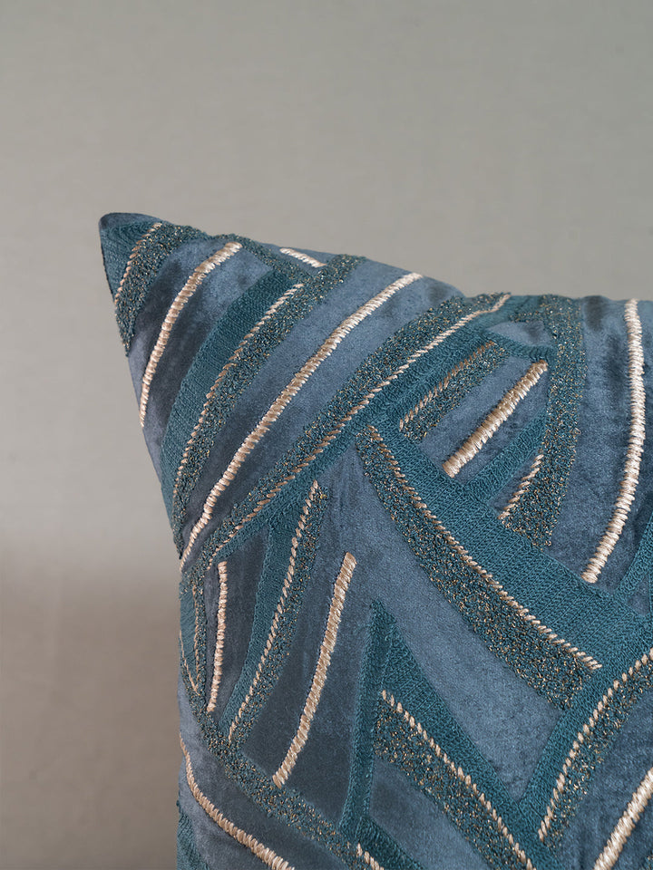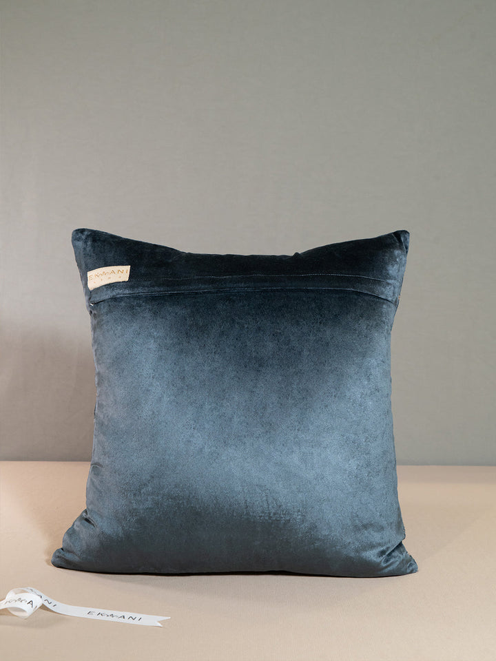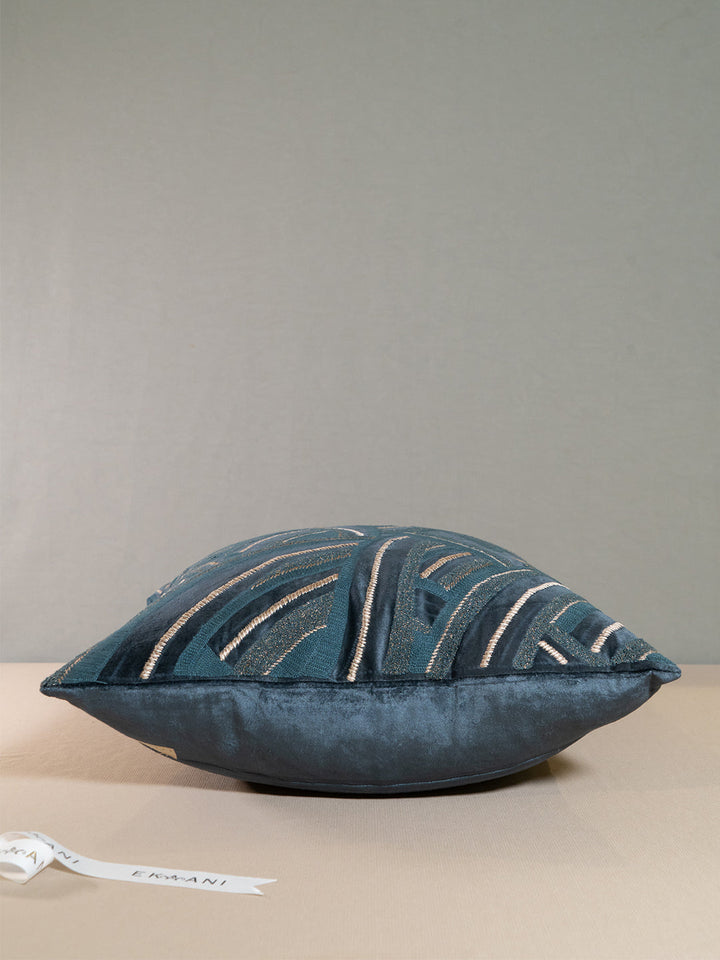 Nature Viscose Velvet With Heavy Thread Embroidery Dark Teal Cushion
