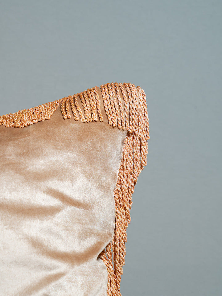 Nature Viscose Velvet With Silk Fringes Rust Cushion