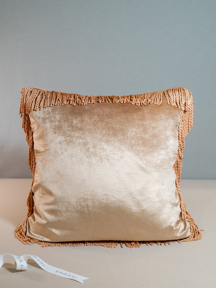 Description: Ekaani's Nature Viscose Velvet Cushion combines rustic charm with sophisticated design and is a must for all. It features a rich rust color and delicate silk fringes that creates a mesmerizing visual effect. The cushion cover is made of velvety soft viscose fabric and can be used to add a touch of elegance to any room, including the living room, bedroom, or outdoor space.