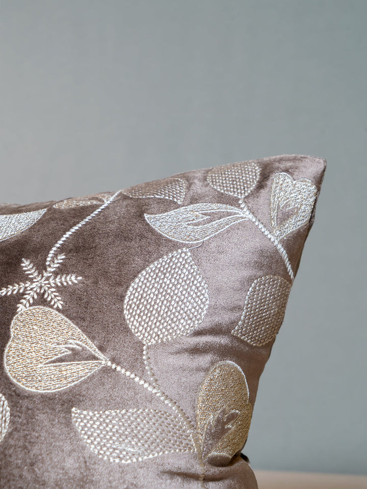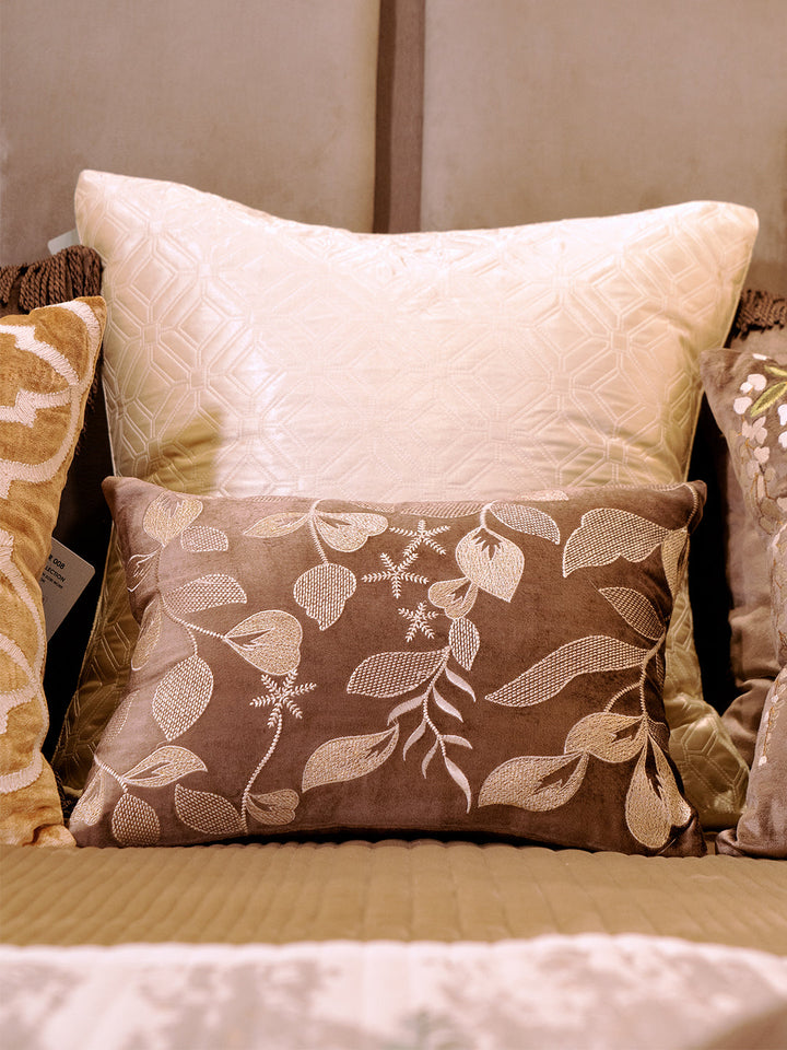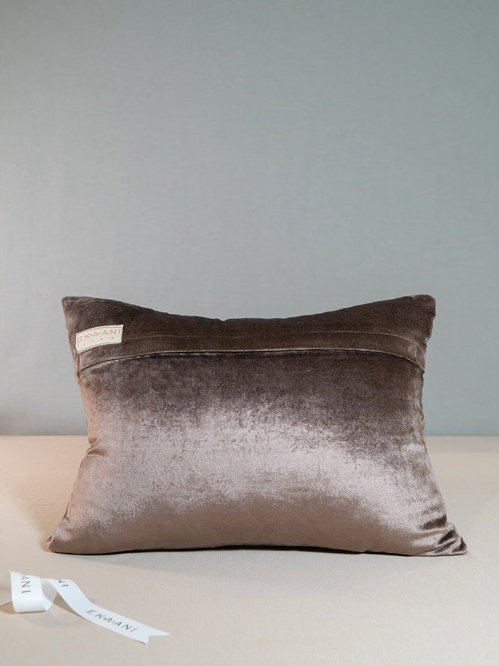 Nature Viscose Velvet With Zari & Thread Embroidery Chocolate Brown Cushion
