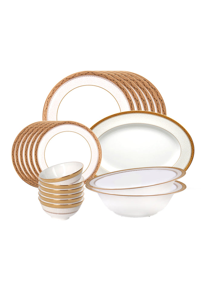- Net Qty: 21 Pcs Dinner Set includes 6 Dinner Plates 6 Half Plates 6 Veg Bowls 1 Oval Platter 2 Serving Bowl