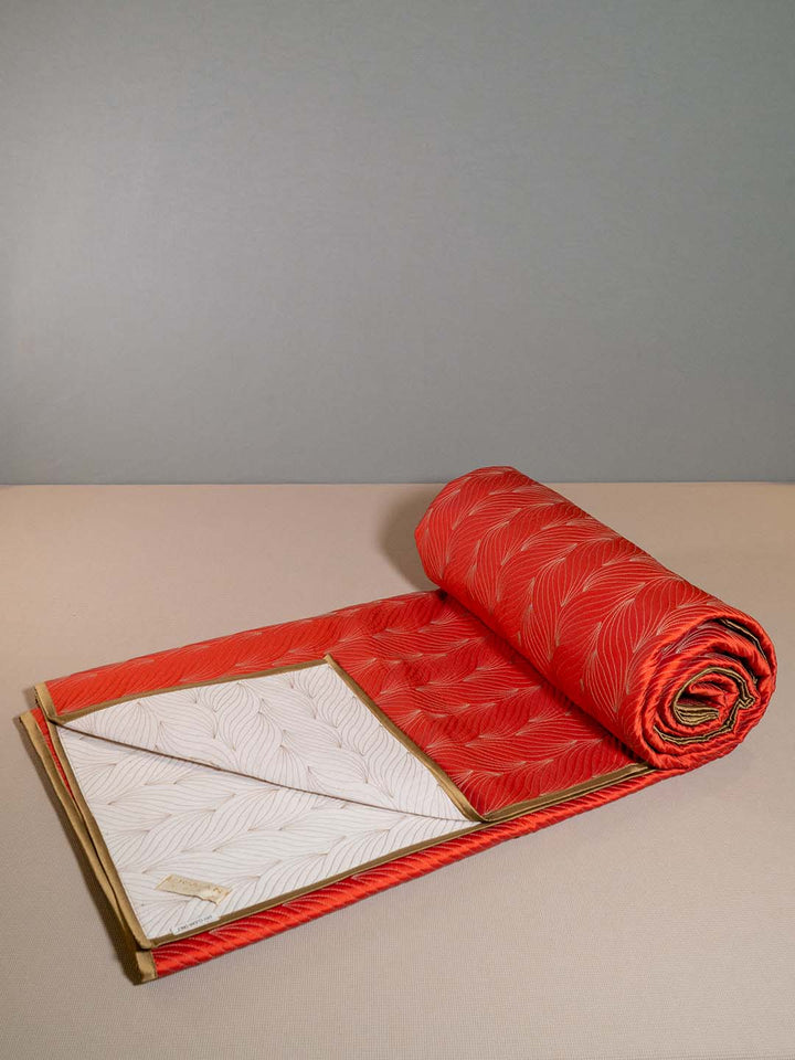 Description: Ekaani Pomegranate Quilted Velvet Bedcover is a stunning example of craftsmanship and design. Made from plush velvet, it features a deep maroon color that conveys elegance and warmth. The detailed diamond quilting pattern enhances its texture and visual appeal, creating an enchanting interplay of light and shadow.