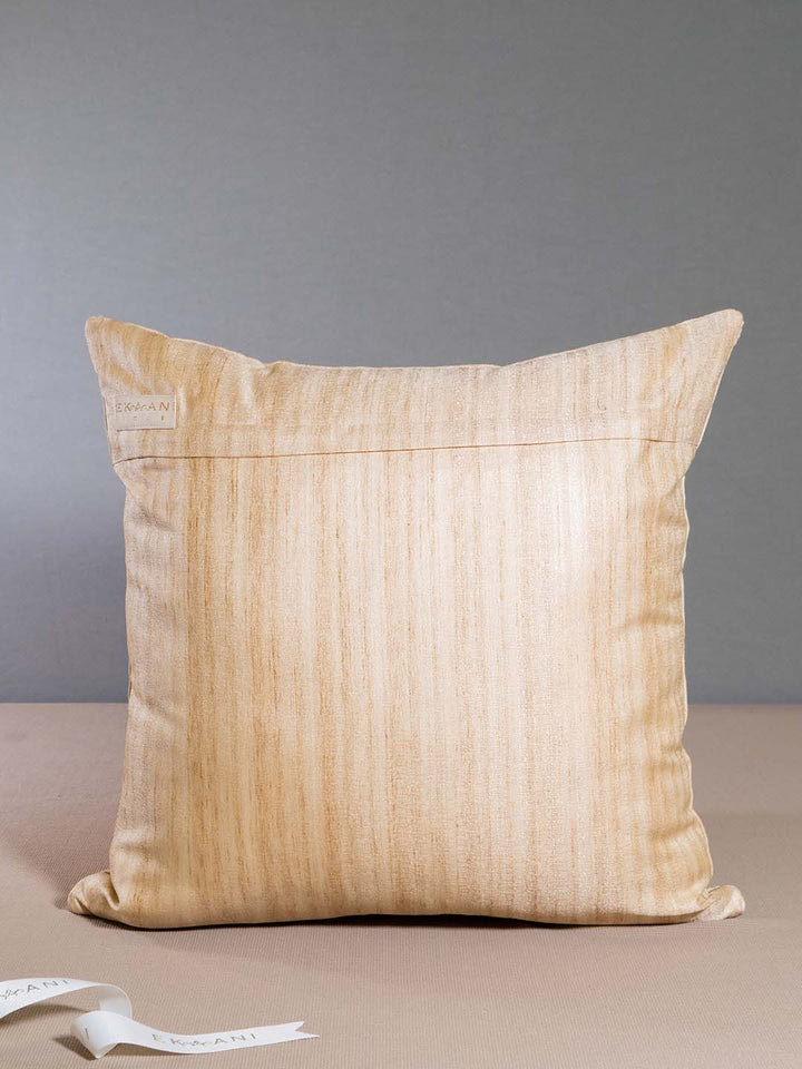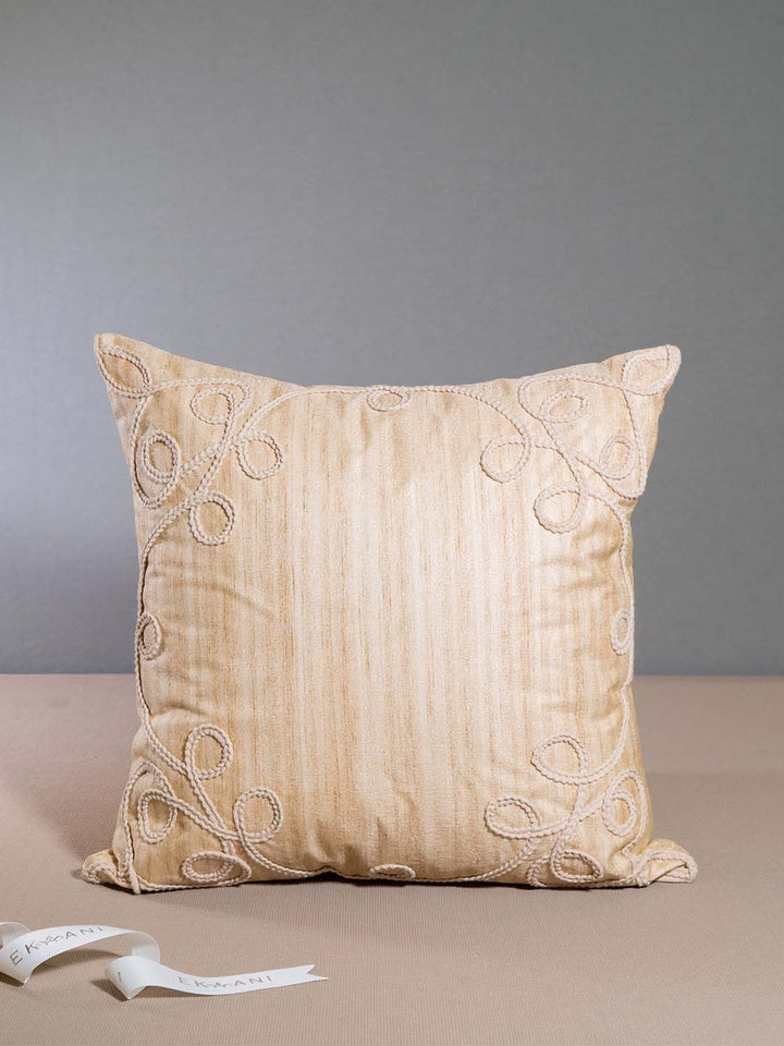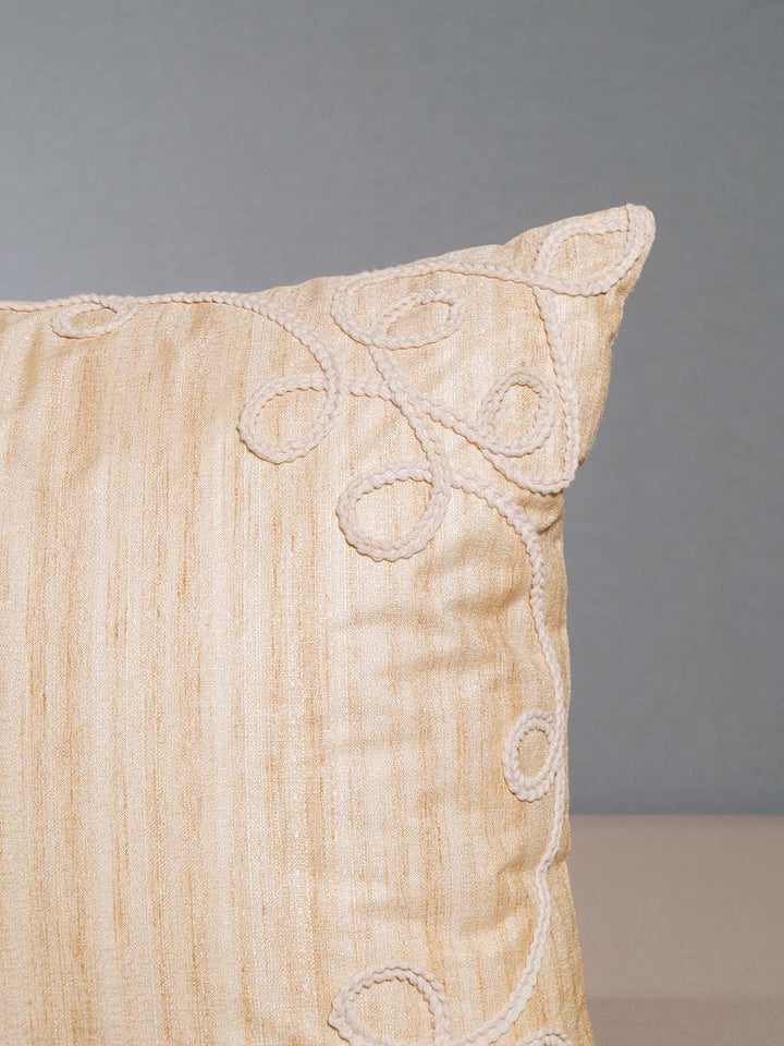 Pomegranate Faux Raw Silk With Lace Embroidery Beige Cushion