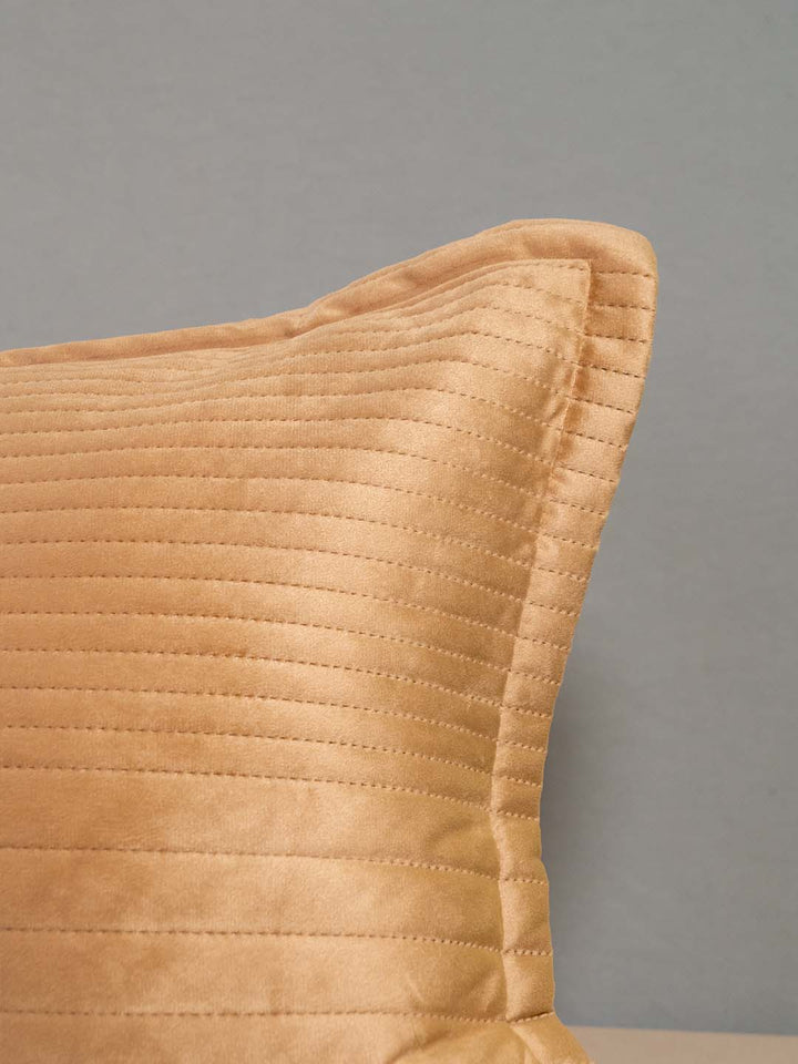 Description: Ekaani's Pomegranate Velvet Quilted Stripe Mustard Pillow is a luxurious cushion that features a rich mustard hue complemented by a detailed quilted stripe pattern, enhancing its depth and visual interest. Made from soft, high-quality velvet, it offers extraordinary comfort and sophistication.