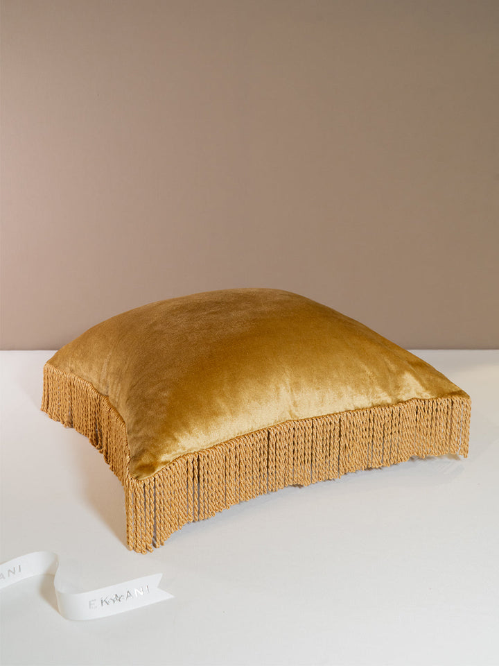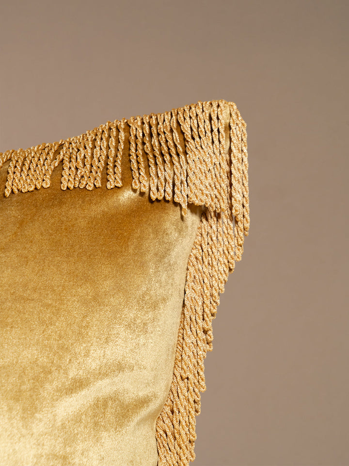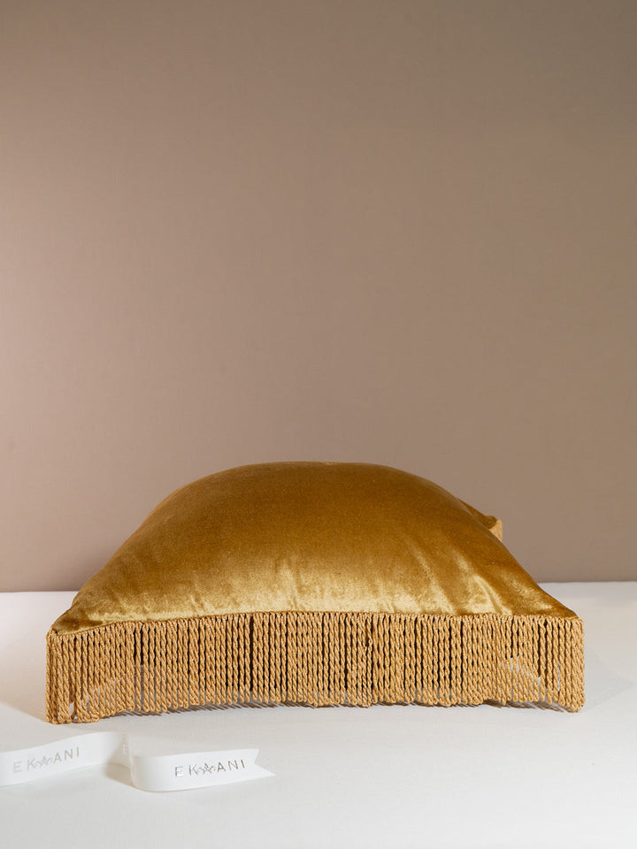 Pomegranate Viscose Velvet With Silk Fringes Mustard Cushion
