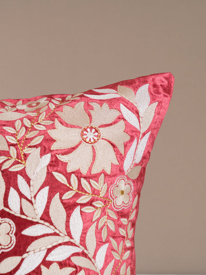 Pomegranate Viscose Velvet With Thread & Zari Embroidery Maroon Cushion