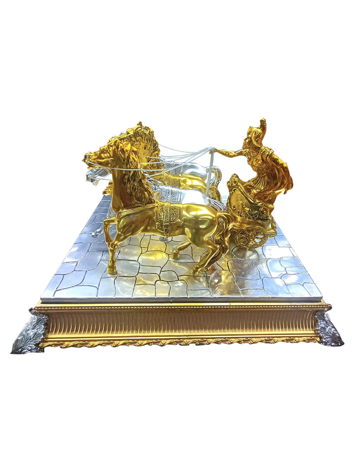 This Chariot horses is a fabulous decorative showpiece for most homes.The fine finish and attractive look of it makes this horse chariot more desirable accessory for living and dining room. The detailing on its surface, lovely structure and carving deatil also adds to its beauty and it is a perfect masterpiece for all those who love to collect distinct showpieces.