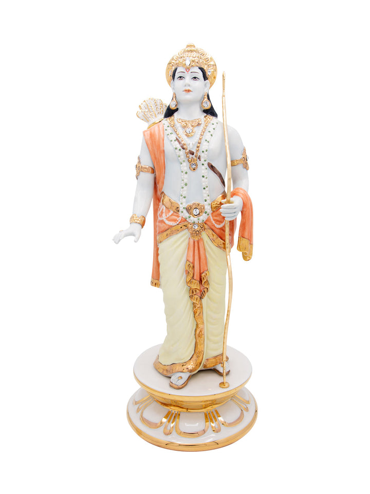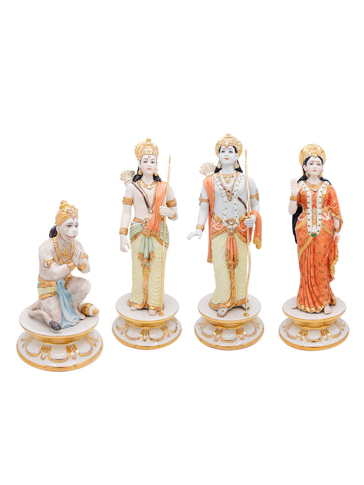Ram Darbar Statue, Sita, Ram, Laxman and Hanuman porcelain religious God Idol sculpture. This is a religious home temple sculpture and puja shrine. The sculpture is one of the ideal gift pieces. It always remains in demand for domestic and corporate gifting purpose. "