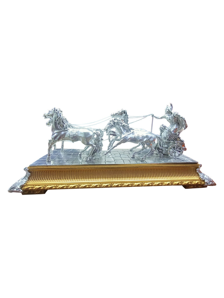 This Chariot 4 horses is a fabulous decorative showpiece for most homes.The fine finish and attractive look of it makes this horse chariot more desirable accessory for living and dining room. The detailing on its surface, lovely structure and carving deatil also adds to its beauty and it is a perfect masterpiece for all those who love to collect distinct showpieces.