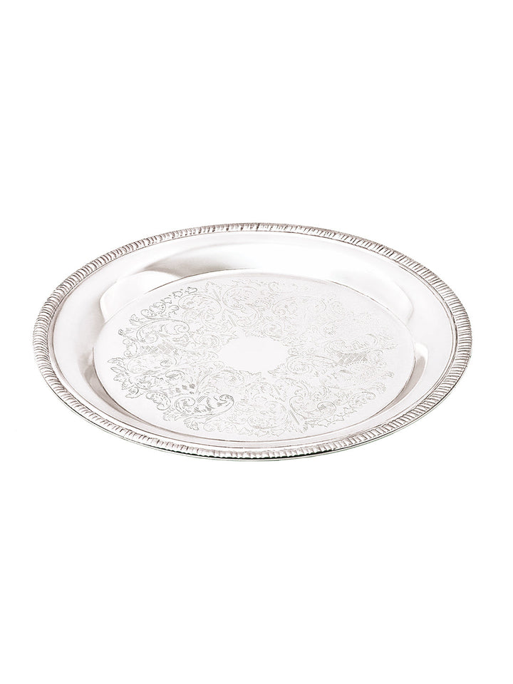 A gracious border detailed Round Tray is an elegant kitchenware for serving tea and coffee. The round design offers a 25 CM diameter perfect for engraving. Made of high quality material and polished to an eye catching luster. It can be use for serving drinks and food in home parties