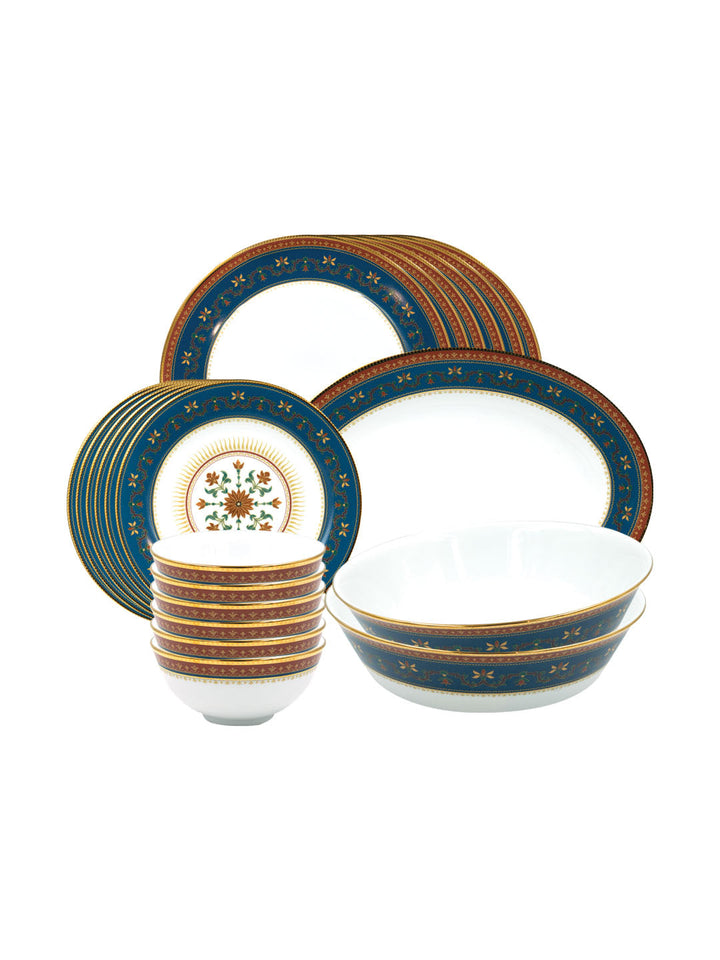 - Net Qty: 21 Pcs Dinner Set includes 6 Dinner Plates 6 Half Plates 6 Veg Bowls 1 Oval Platter 2 Serving Bowl
