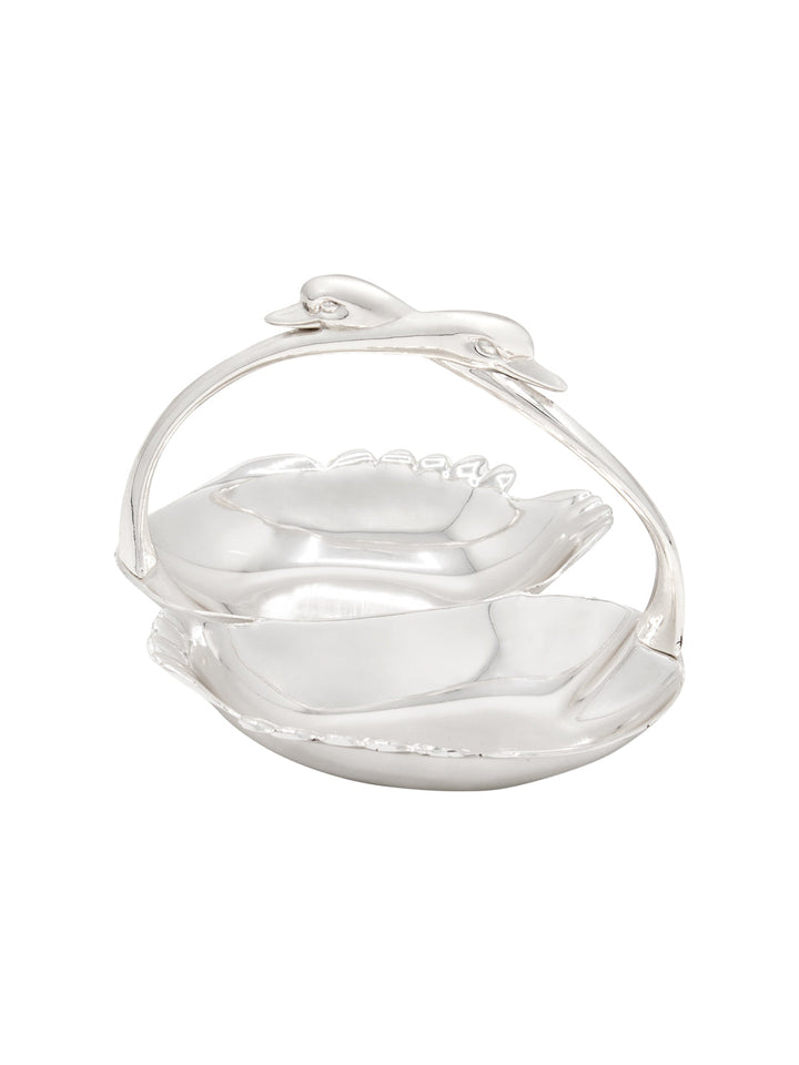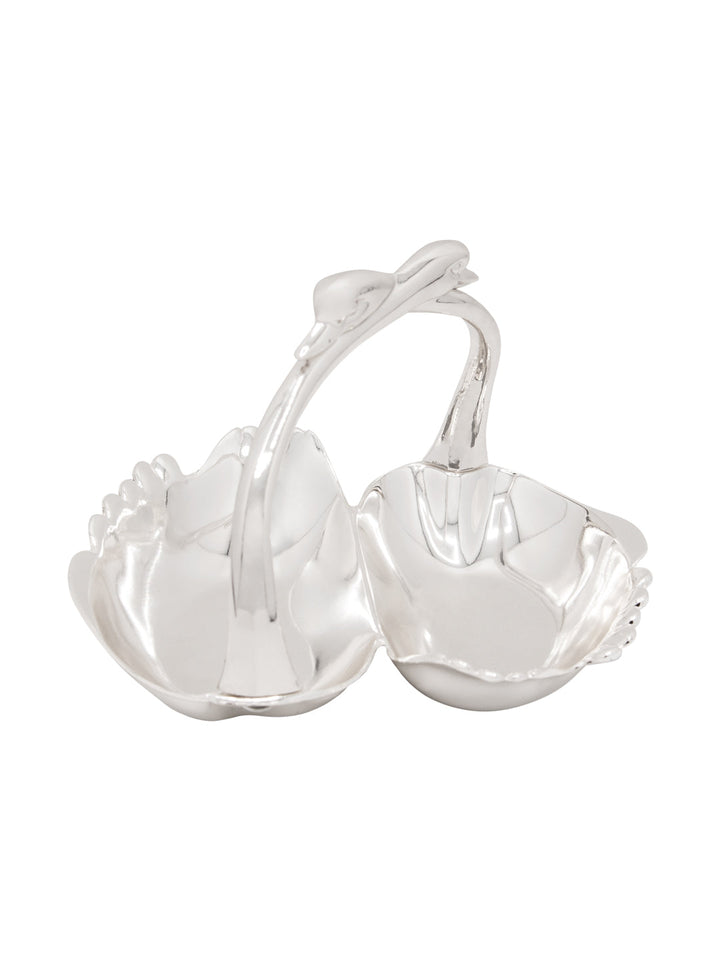A gracious border detailed Swan Tray with smart looking handle for support is an elegant set for keeping at dine. Use it for fruits or even chocolates, perfectly engraved. Made of high quality pure silver material and polished to an eye catching luster. Engraved in a very impressive detail and final apperance comes up with a fantastic superlative look.
