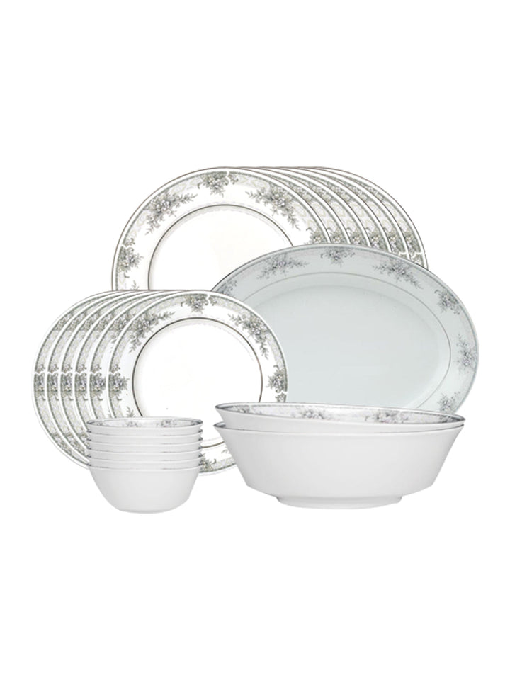 - Net Qty: 21 Pcs Dinner Set includes 6 Dinner Plates 6 Half Plates 6 Veg Bowls 1 Oval Platter 2 Serving Bowl