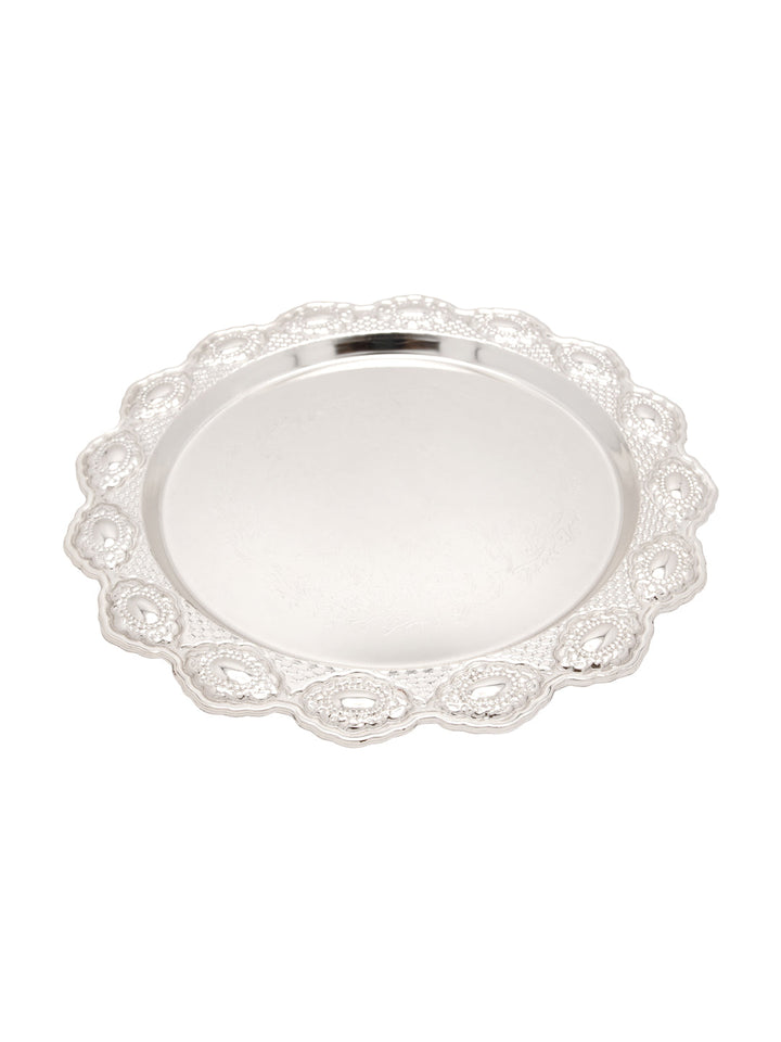 This stunning vintage Round Thali is the best selection for puja or for serving delicious food to your guests. This vintage piece is a better fit for serving variety of food at any of the occasion. The intricate pattern on this silver thali is just beautiful. Make a delicious appetizer that will be gone quickly so people can admire it.ÂÂÂ