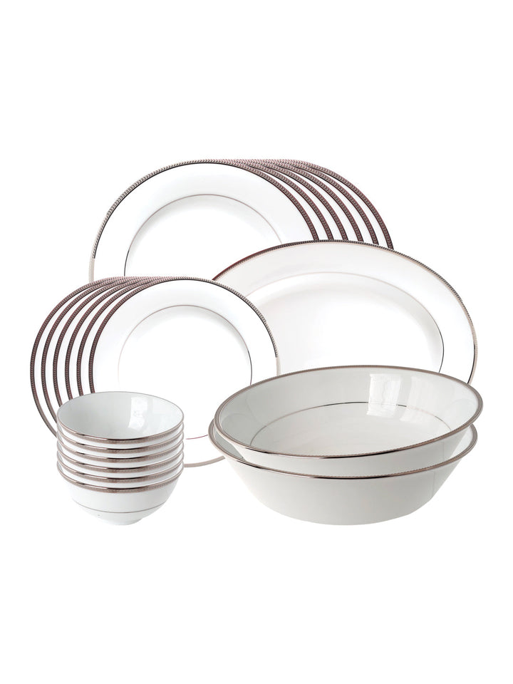 - Net Qty: 21 Pcs Dinner Set includes 6 Dinner Plates 6 Half Plates 6 Veg Bowls 1 Oval Platter 2 Serving Bowl